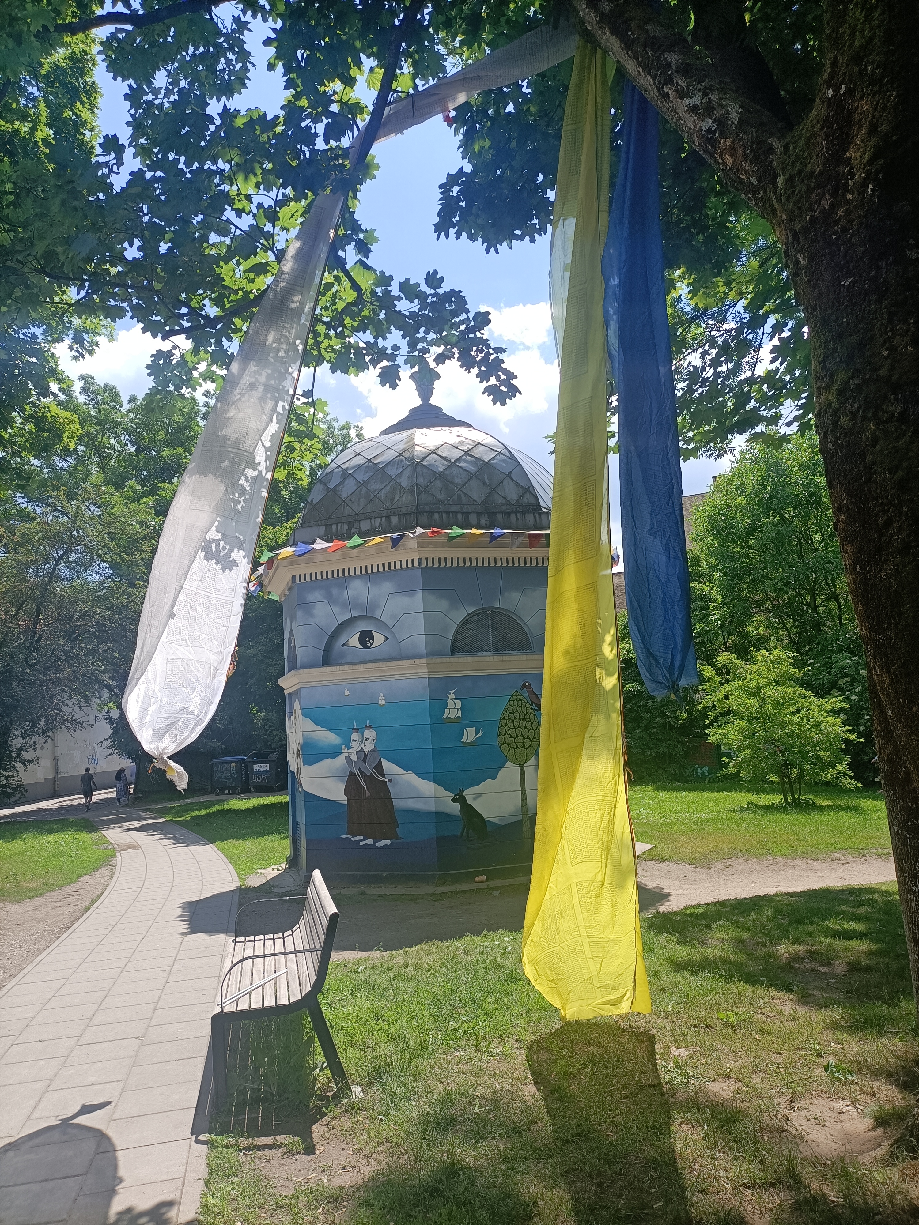 C’est ainsi qu’en 1998 Užupis devient une micro-nation à l’initiative des habitants. Užupis se dote alors d’une constitution (dont je vous recommande la lecture, elle est disponible sur wikipedia) et d’un drapeau qui change de couleur en fonction des saisons. La micro-nation est également jumelée avec… la république de Montmartre (association créée en 1920) ! Elle est d’ailleurs souvent appelée « la Montmartre lituanienne ».